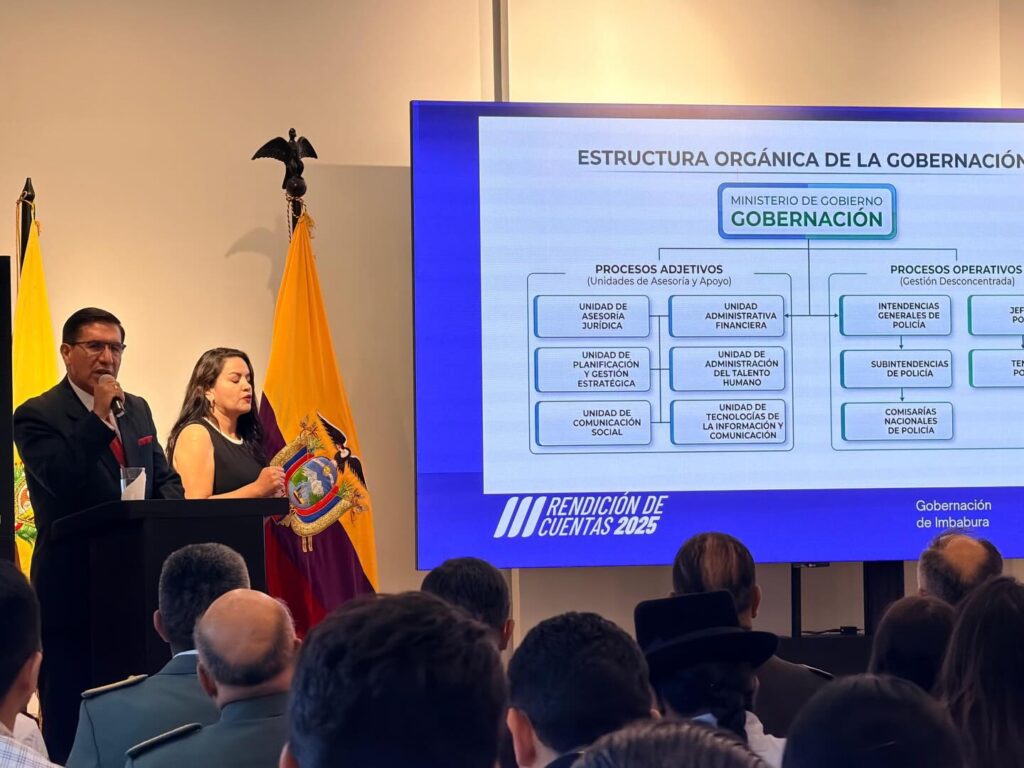La Gobernación de Imbabura, liderada por el gobernador Jorge Ortiz, realizó el 23 de abril de 2026 la Rendición de Cuentas correspondiente al año 2025. En el informe se destacaron los avances logrados en materia de seguridad ciudadana, control territorial y articulación interinstitucional, en beneficio de toda la ciudadanía imbabureña.